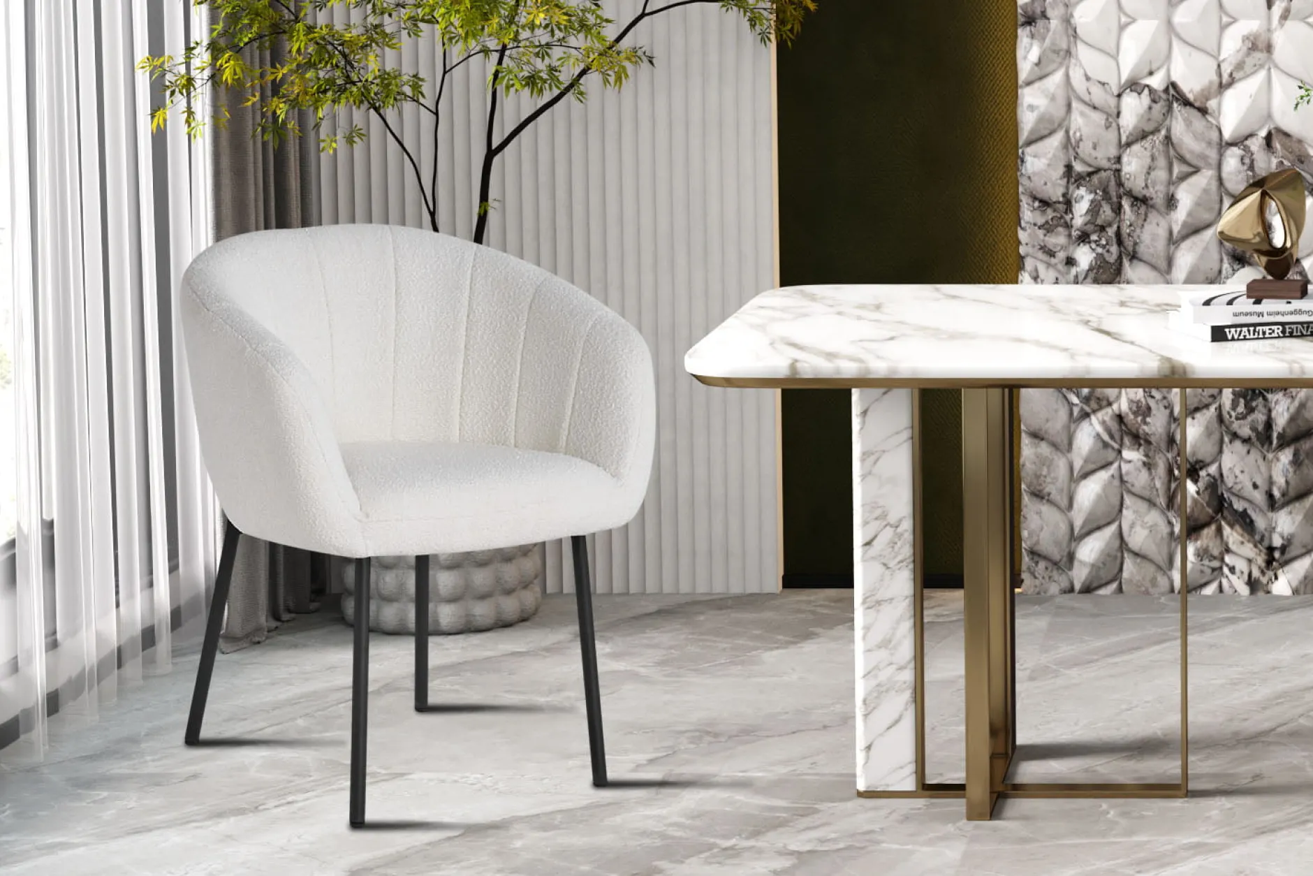 Met de Stoel Pia in grijze bouclé voeg je een vleugje verfijning toe aan je interieur. Deze set van 2 stoelen heeft een zithoogte van 48 cm en een zitdiepte van 44 cm, wat zorgt voor een comfortabele zitplaats. Het grijze bouclé materiaal geeft de stoelen een eigentijdse uitstraling en past perfect in moderne interieurs. Geniet van stijl en comfort in je eetkamer met de Stoel Pia – Set van 2.