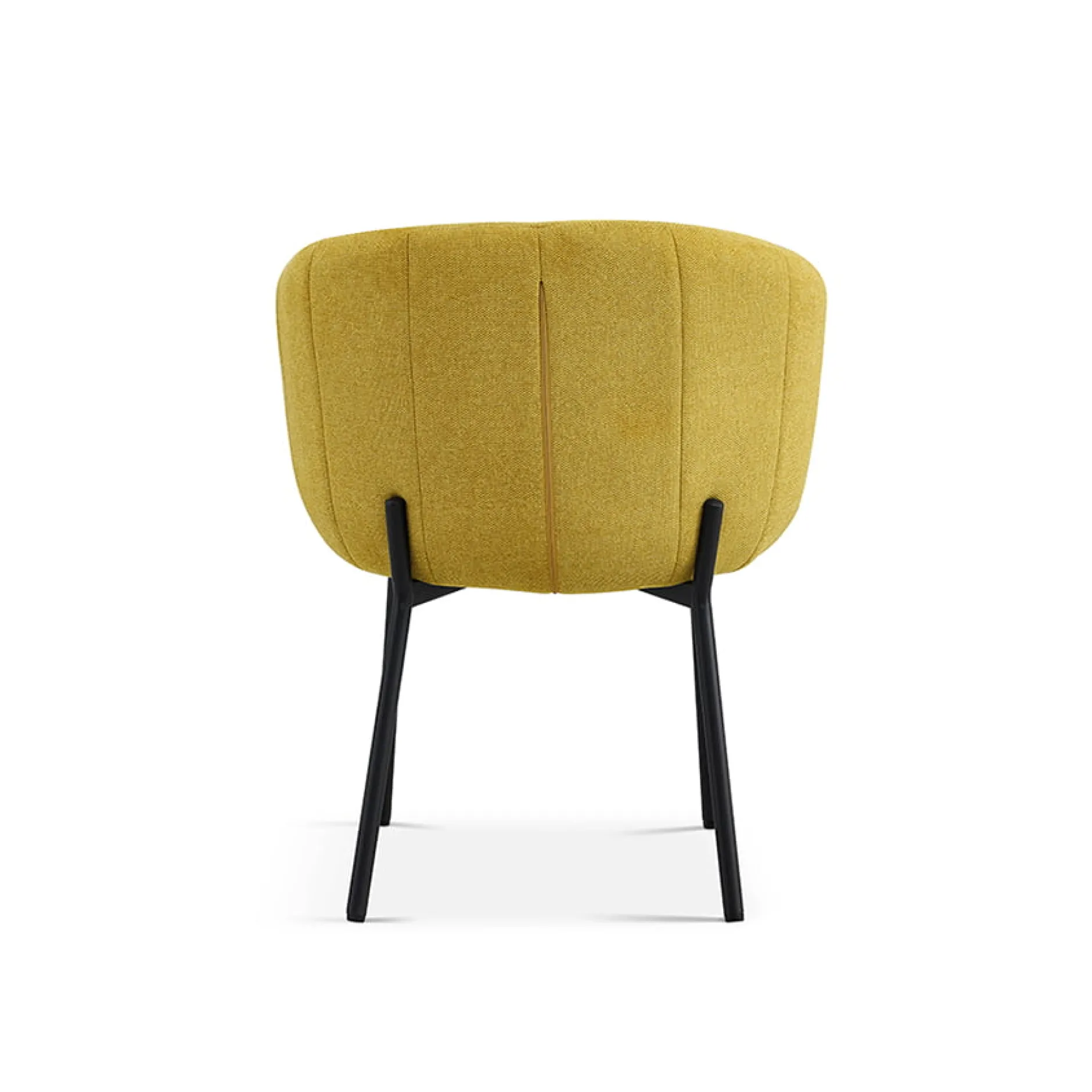 Deze leuke eetkamerstoel is door zijn speelse design een aanwinst voor elk eet- of woonkamer. De zwarte ronde metalen poten gecombineerd met een goed zitcomfort maakt deze stoel af. De stoel is verkrijgbaar in meerdere kleuren waardoor je leuk kunt variëren! Deze stoel heeft een zithoogte van 48 cm en een zitdiepte van 44 cm, de armleuningen zijn 24 cm hoog. Verkrijgbaar in meerdere kleuren.