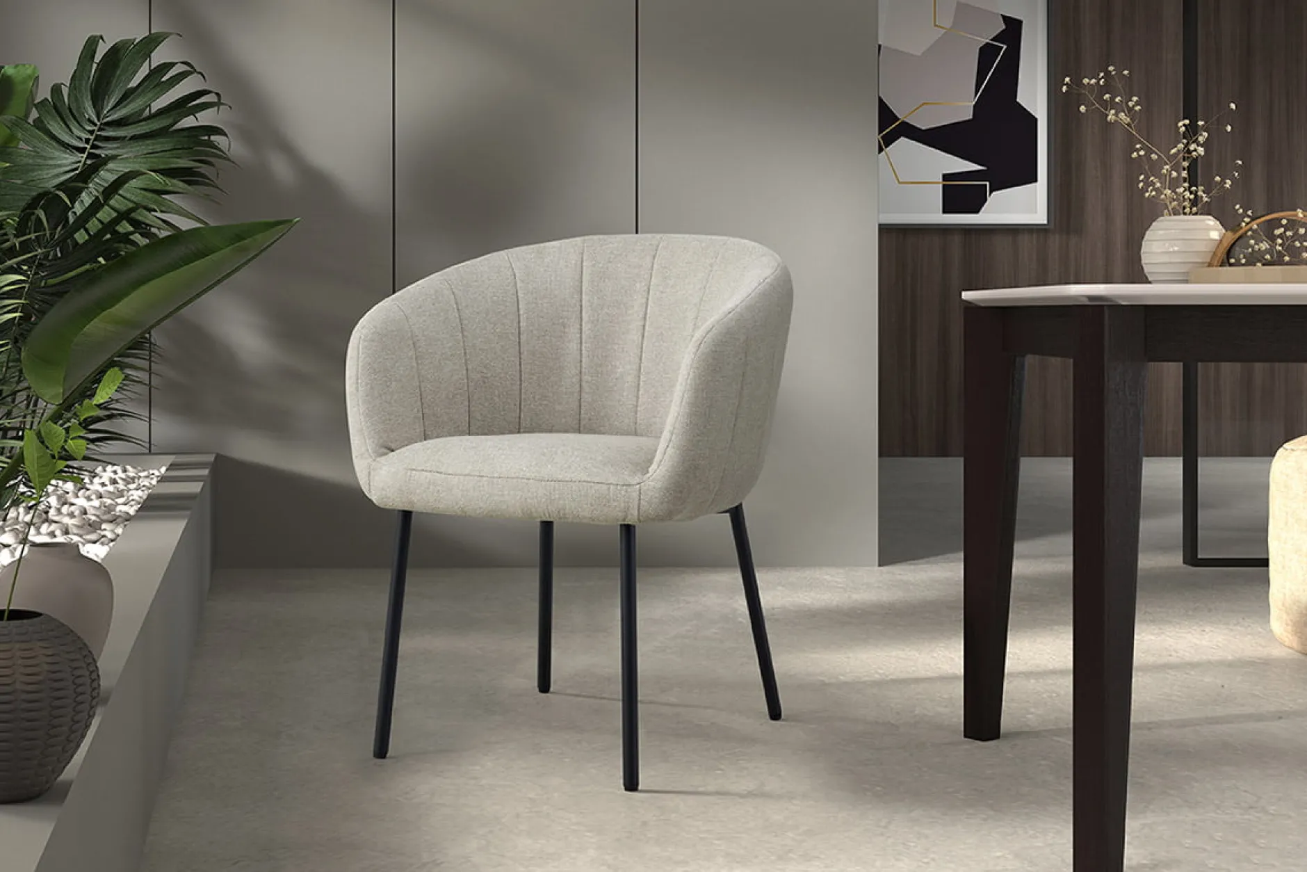 Deze leuke eetkamerstoel is door zijn speelse design een aanwinst voor elk eet- of woonkamer. De zwarte ronde metalen poten gecombineerd met een goed zitcomfort maakt deze stoel af. De stoel is verkrijgbaar in meerdere kleuren waardoor je leuk kunt variëren! Deze stoel heeft een zithoogte van 48 cm en een zitdiepte van 44 cm, de armleuningen zijn 24 cm hoog. Verkrijgbaar in meerdere kleuren.