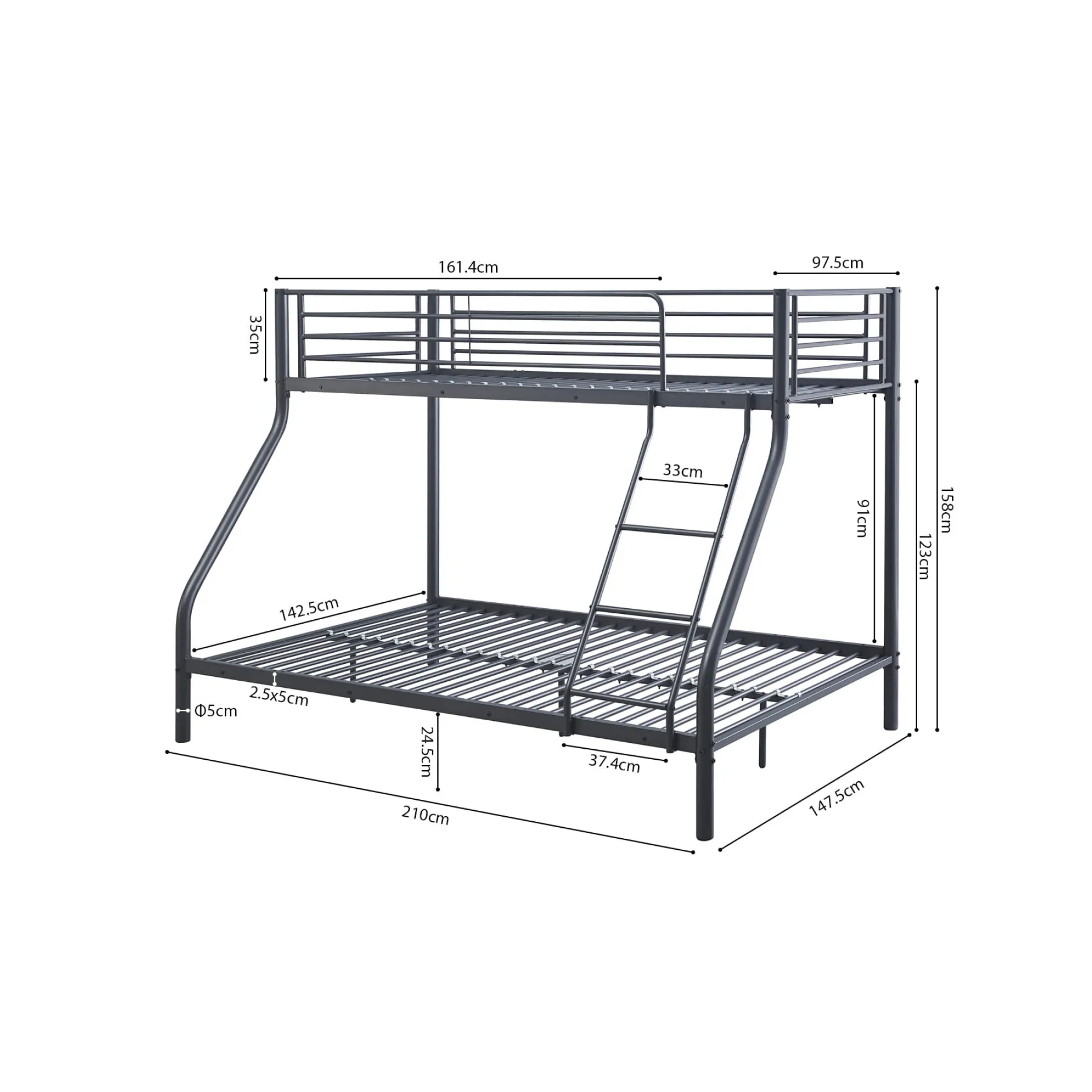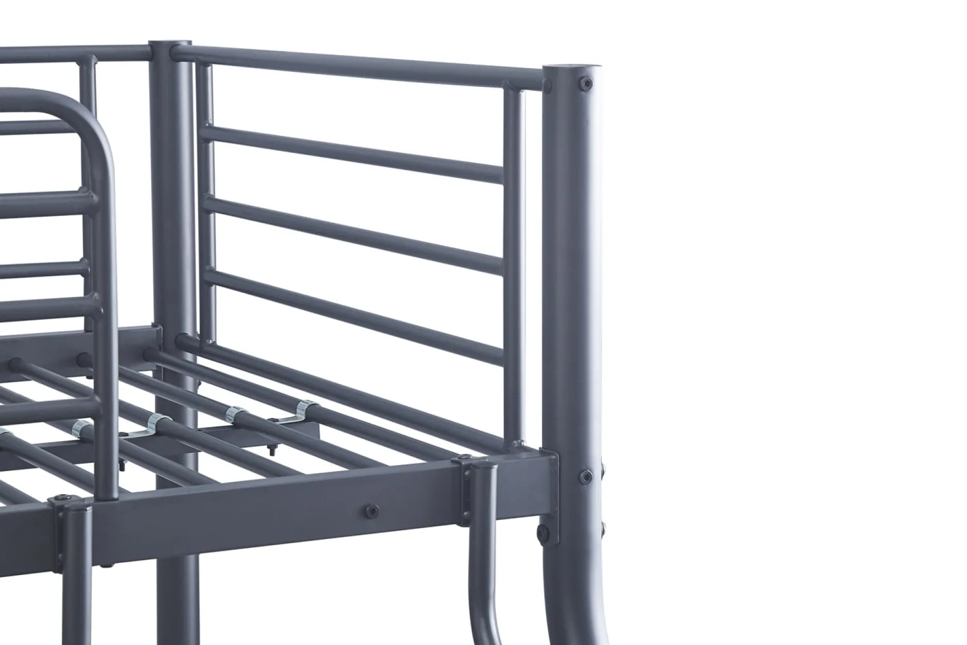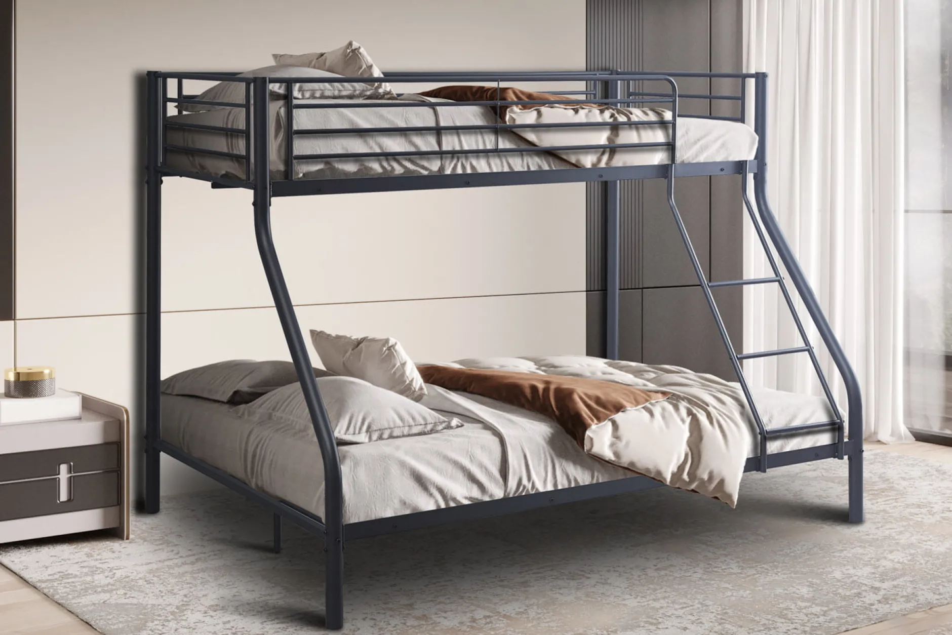 Het Triobed Romain Donkergrijs is een veelzijdige en voordelige aanwinst voor je slaapkamer. Dit ruimtebesparende bed is ontworpen om zowel stijl als functionaliteit te bieden. Het benedendeel van het triobed is geschikt voor een matras van 140×200 cm, terwijl het bovenste gedeelte perfect is voor een matras van 90×200 cm. Hierdoor is het ideaal voor gastenkamers, kinderkamers of iedereen die op zoek is naar een slimme oplossing voor ruimtegebrek.