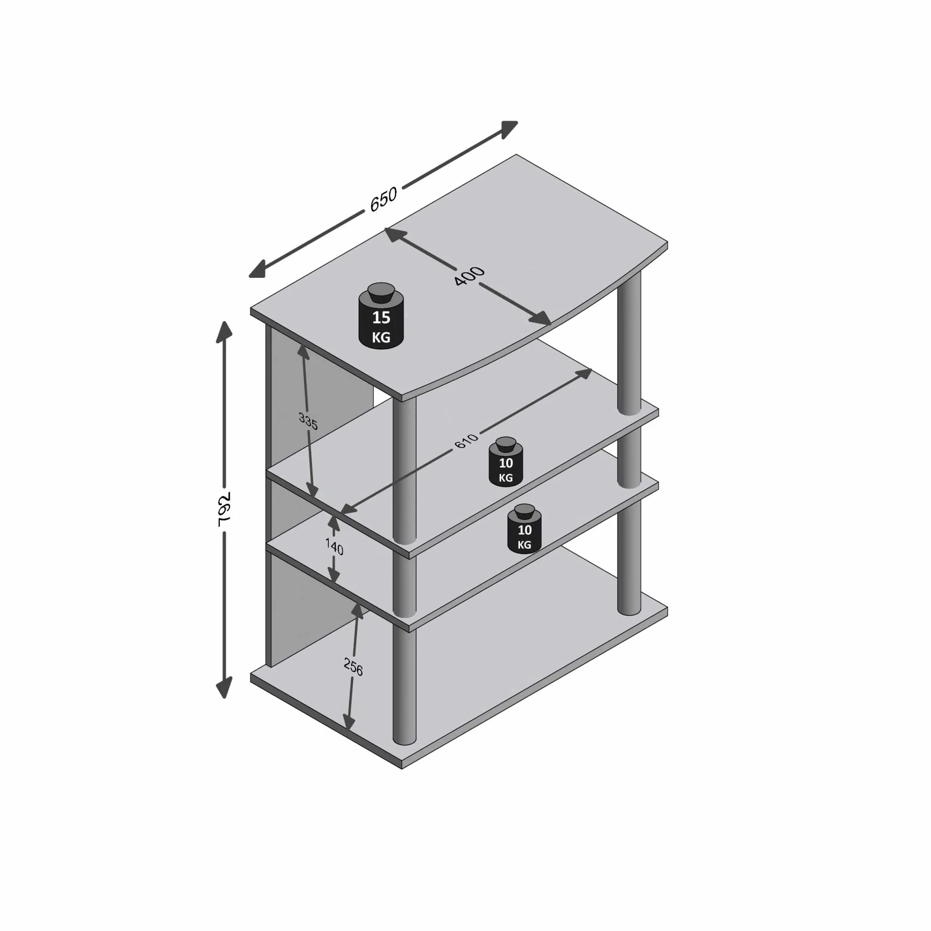 Handig tv-meubel met meerdere lagen voor het uitstallen van apparatuur of het opbergen van accessoires. Dit tv-meubel is vervaardigd uit een stevige spaanplaat en afgewerkt met een sterke melamine. Eenvoudig te monteren door middel van de bijgeleverde montagehandleiding.