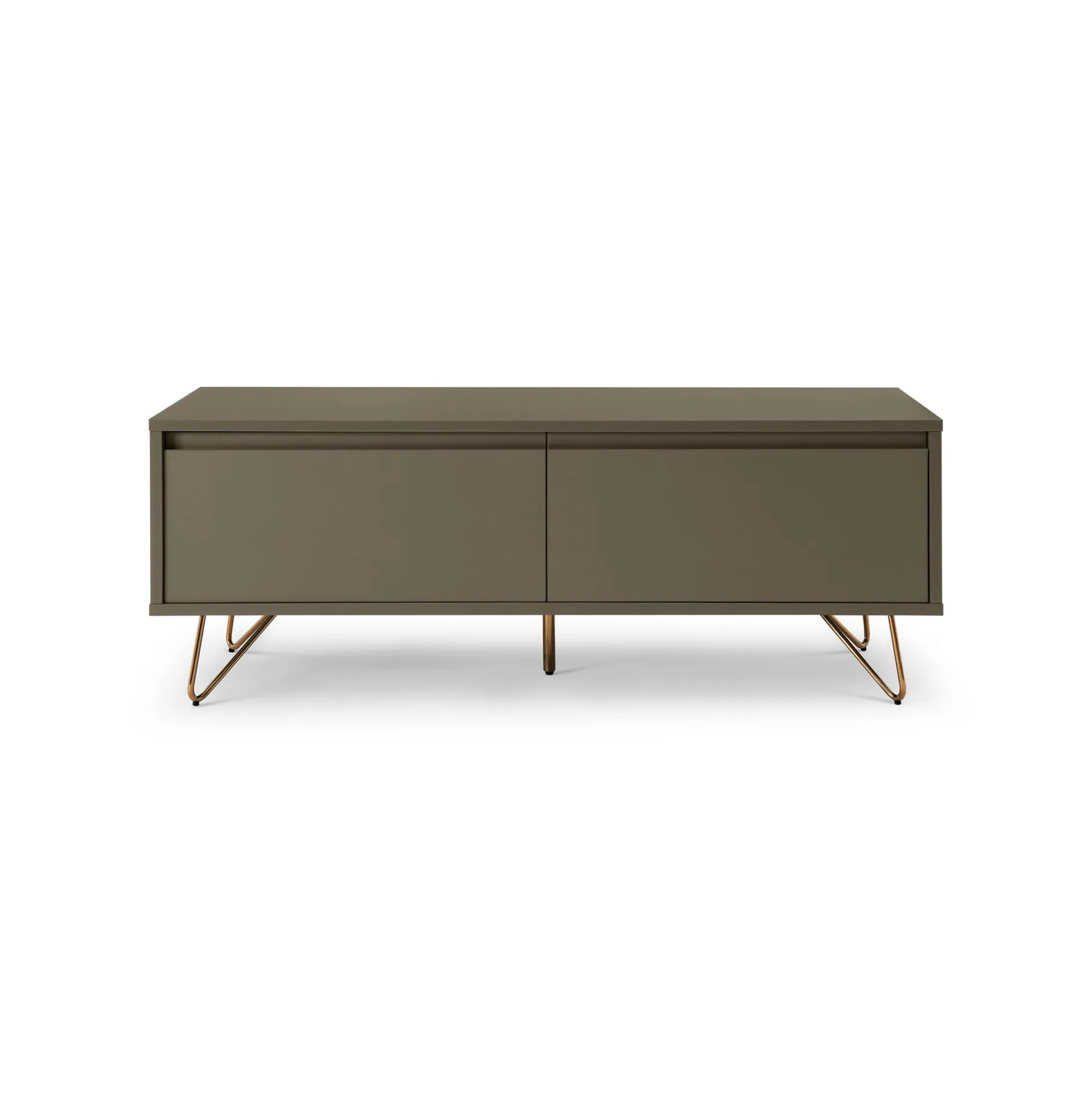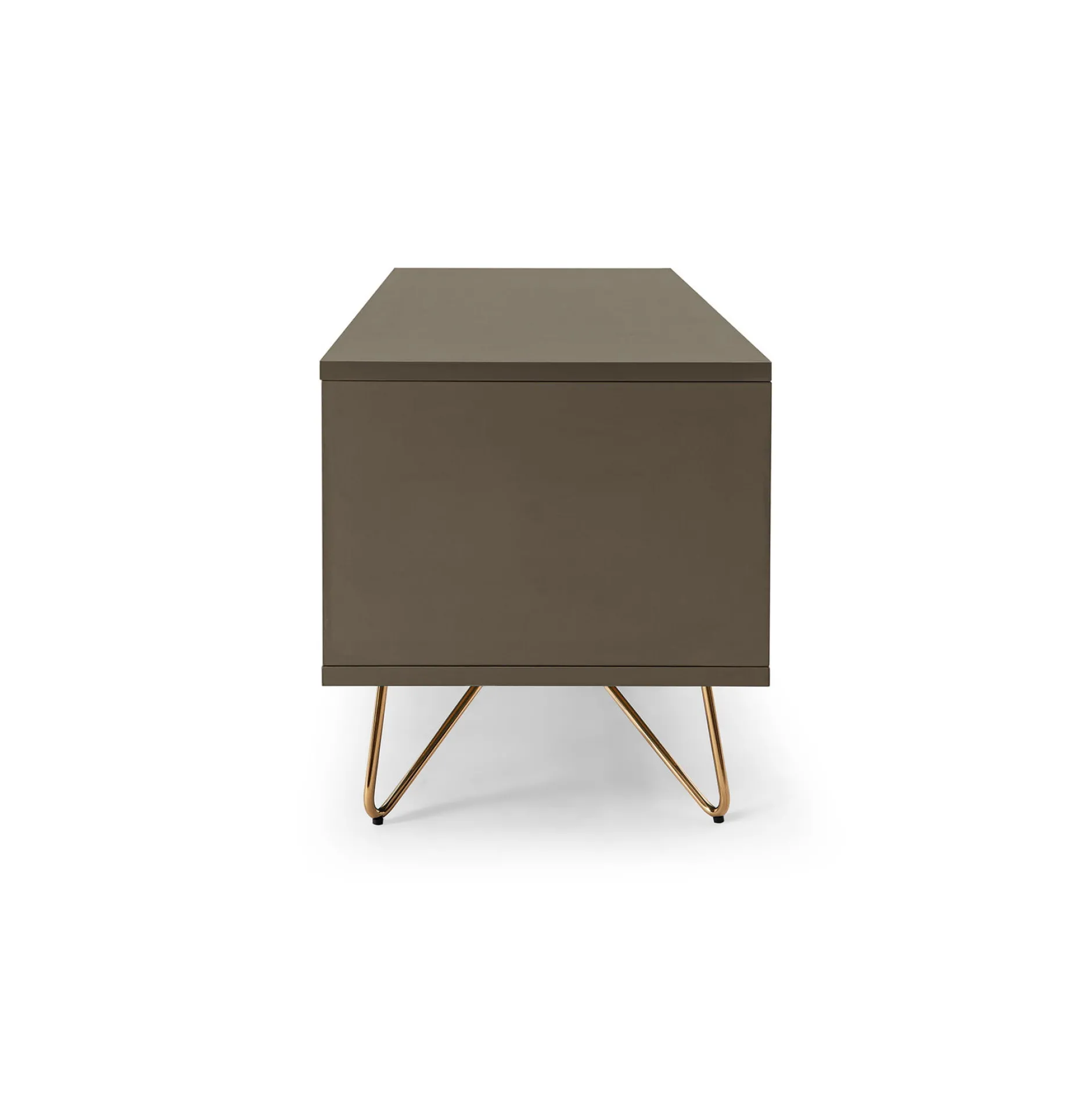 Dit stijlvolle tv-meubel biedt voldoende ruimte voor al je spullen achter de deur en klep, de legplank achter de klep is verwijderbaar. Het tv-meubel is vervaardigd uit een stevige MDF en heeft een matte afwerking. Door de combinatie met zijn gouden metalen poten een echte eyecatcher in je interieur. Gemakkelijk te monteren doormiddel van bijgeleverde montagehandleiding. Bekijk ook de andere elementen uit deze serie.
