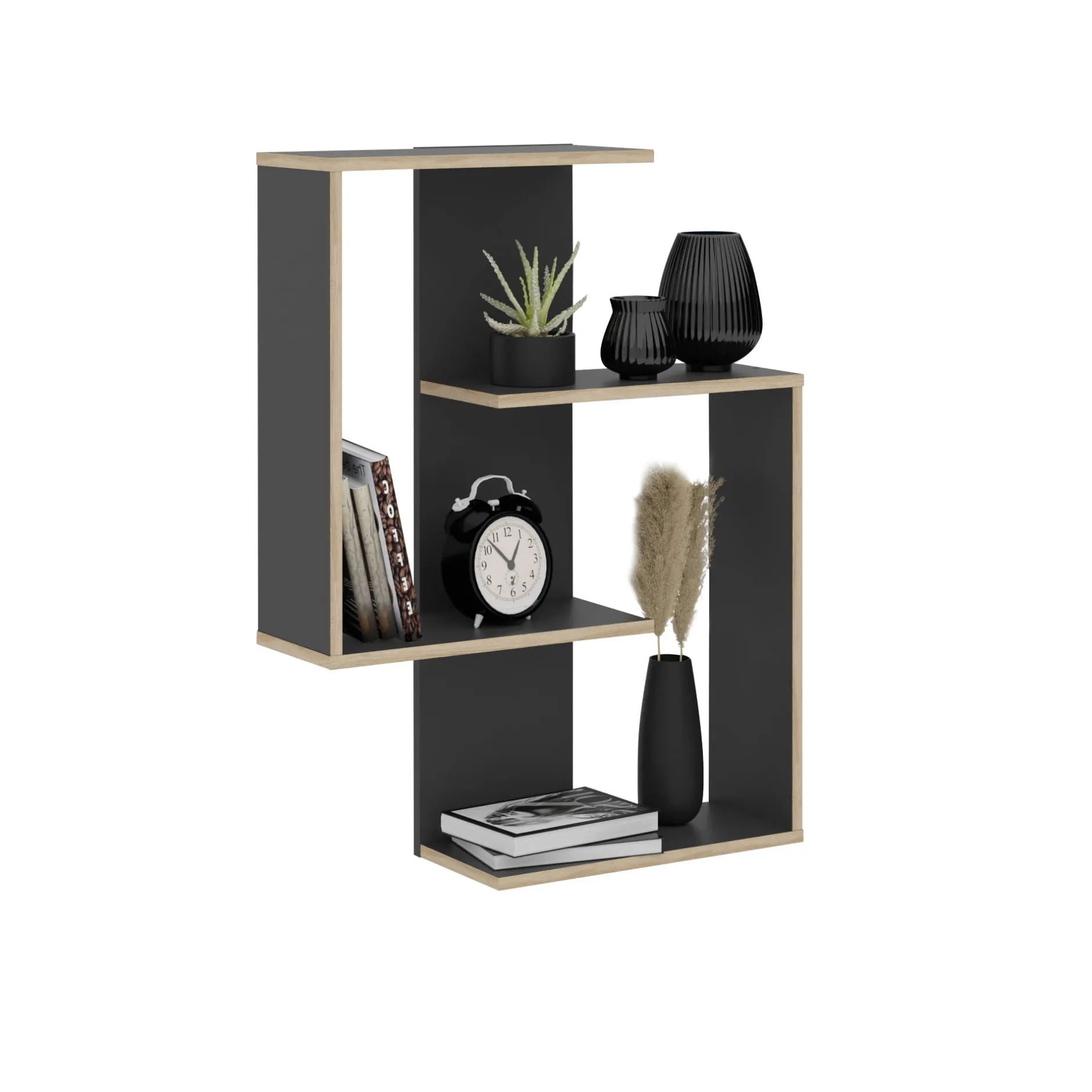 Het wandrek Venus in antraciet en eiken combineert moderne elegantie met een warme houtlook. Dit stijlvolle wandrek biedt ruimte voor boeken, planten of decoratie en is een subtiele blikvanger in je interieur. De combinatie van antraciet en eiken zorgt voor een trendy uitstraling.