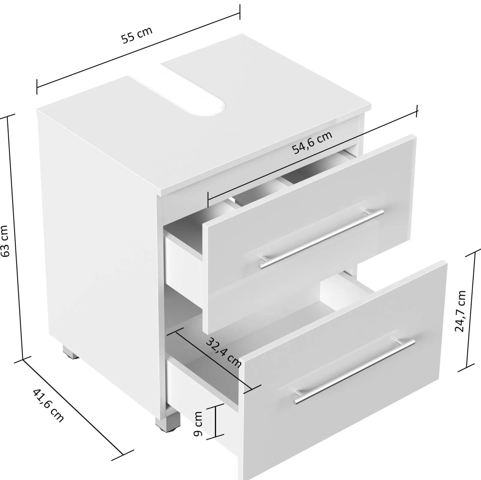 De wastafelkast wordt geleverd exclusief kraan, toevoerleidingen naar de kraan, afvoerplug en zwanenhals.