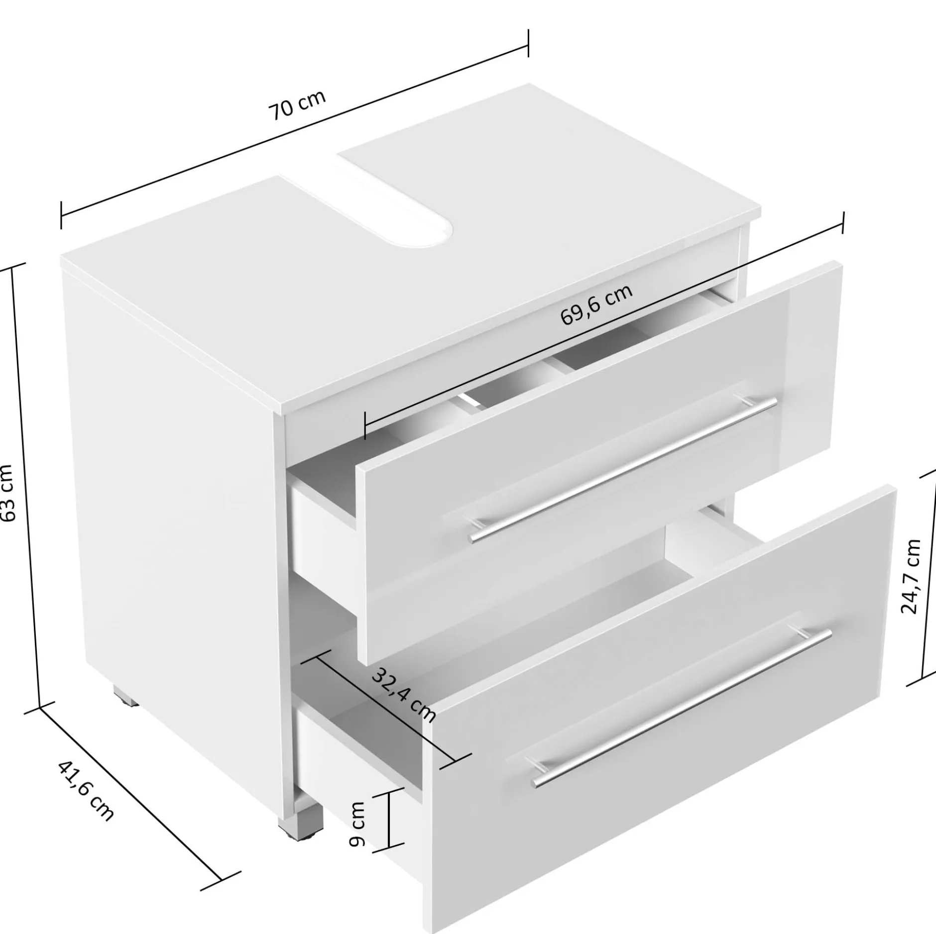 De wastafelkast wordt geleverd exclusief kraan, toevoerleidingen naar de kraan, afvoerplug en zwanenhals.