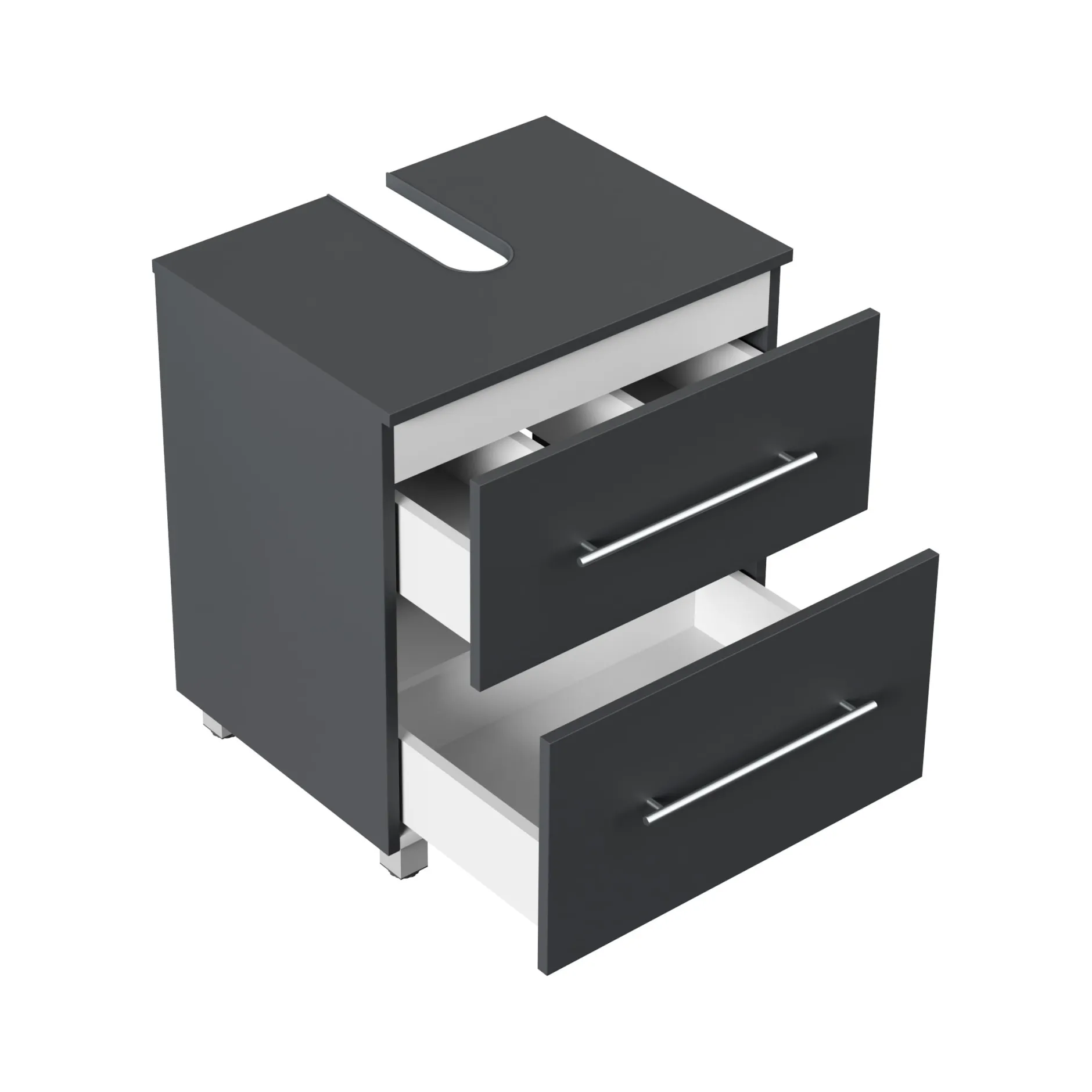 De wastafelkast Glasgow Grafiet 70 cm biedt een strakke en eigentijdse uitstraling voor uw badkamer. Dit in Duitsland ontworpen meubel is gemaakt van hoogwaardig spaanplaat en afgewerkt met een matte grafiet coating, waardoor het zowel stijlvol als onderhoudsvriendelijk is. Met een breedte van 70 cm, een hoogte van 63 cm en een diepte van 41,6 cm biedt de kast voldoende ruimte voor al uw badkamerbenodigdheden, terwijl de soft-close mechanismen zorgen voor een rustige werking.