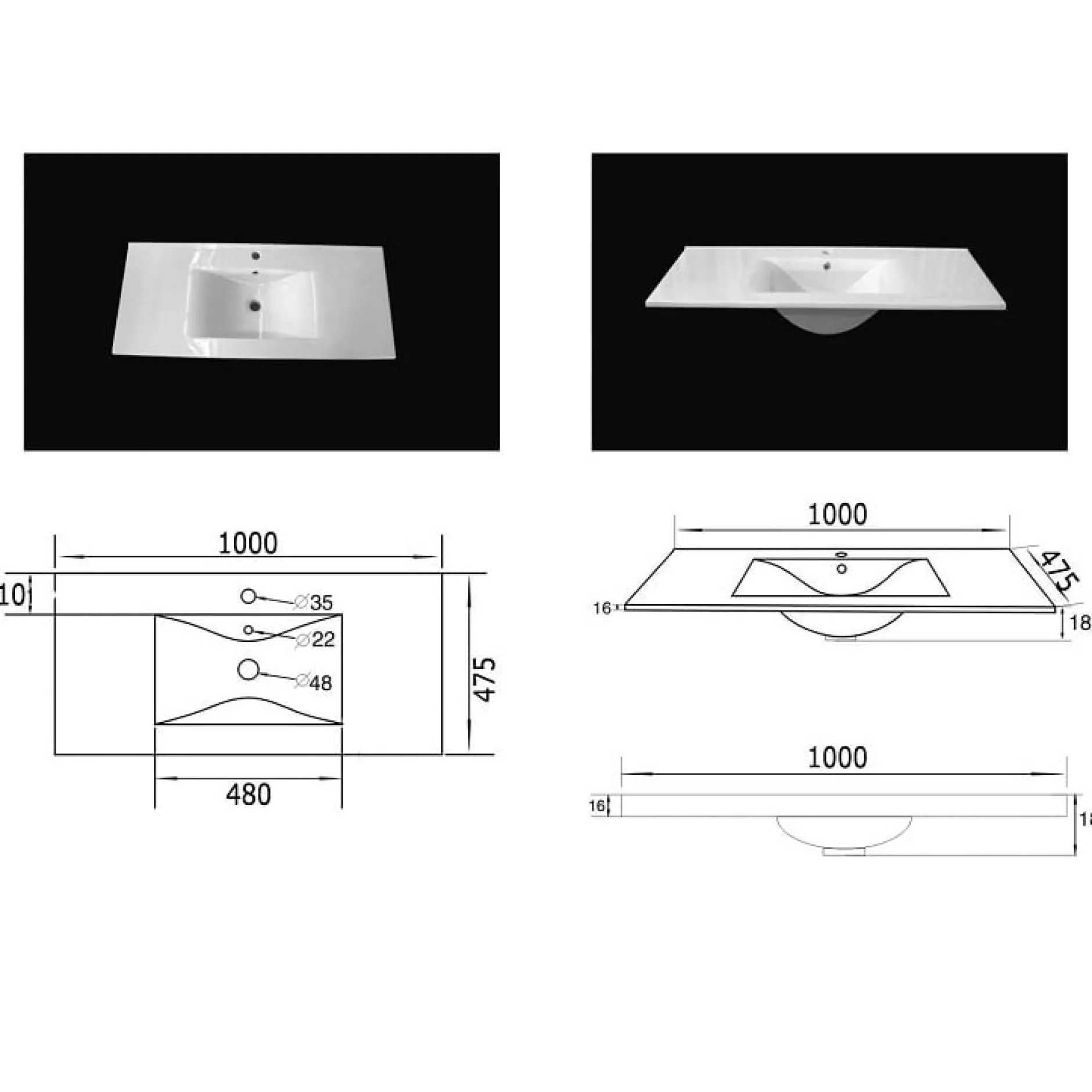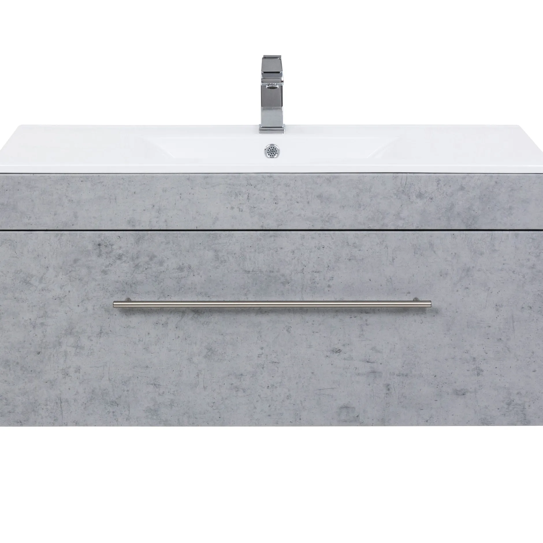 Deze wastafelkast heeft een breedte van 99cm, een hoogte 48cm en een diepte van 45,5cm. De wasbak met overloop heeft een breedte van 100cm en een diepte van 47,5cm. Onder de wastafel bevindt zich een ruime lade met soft-close systeem.