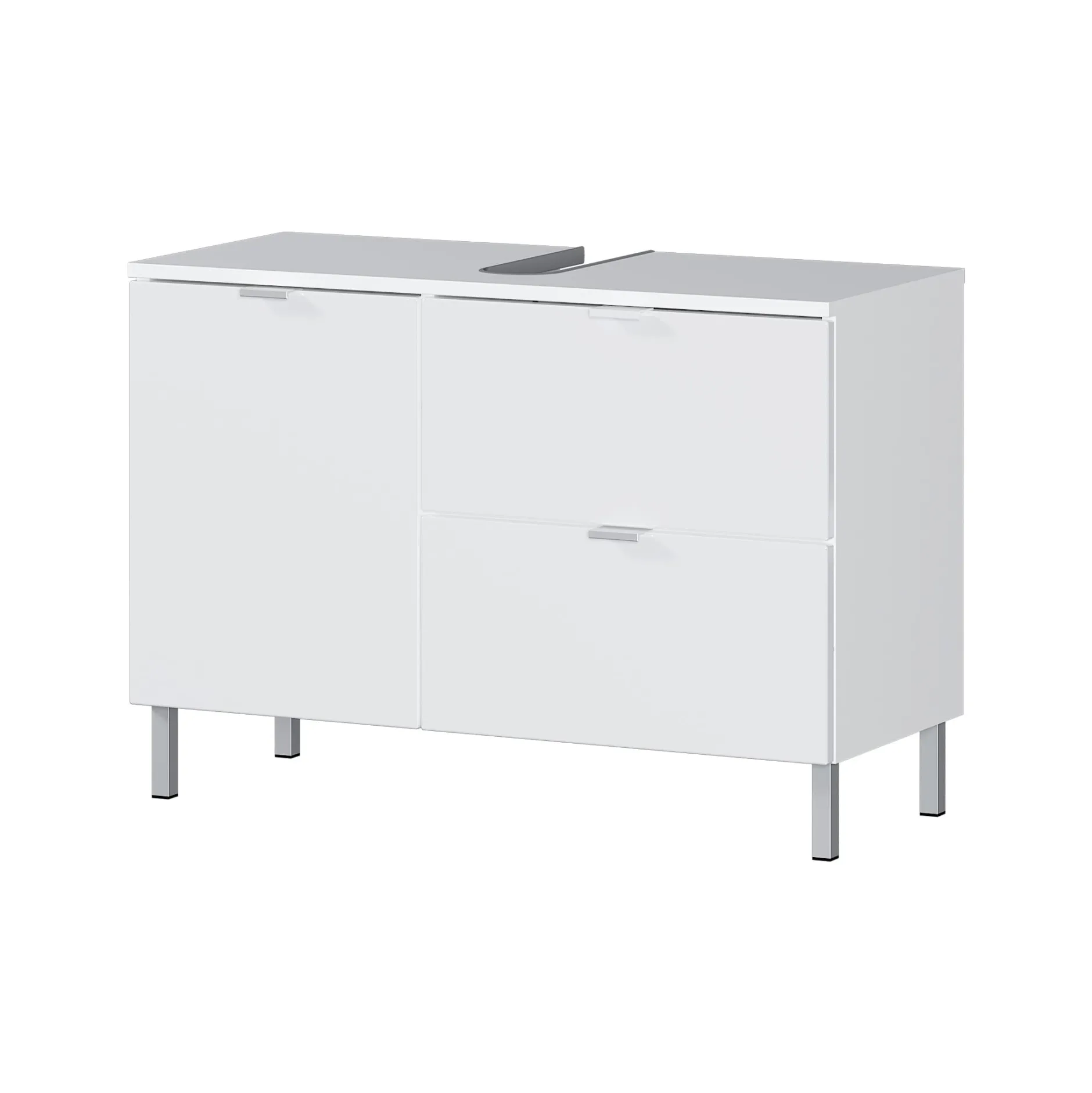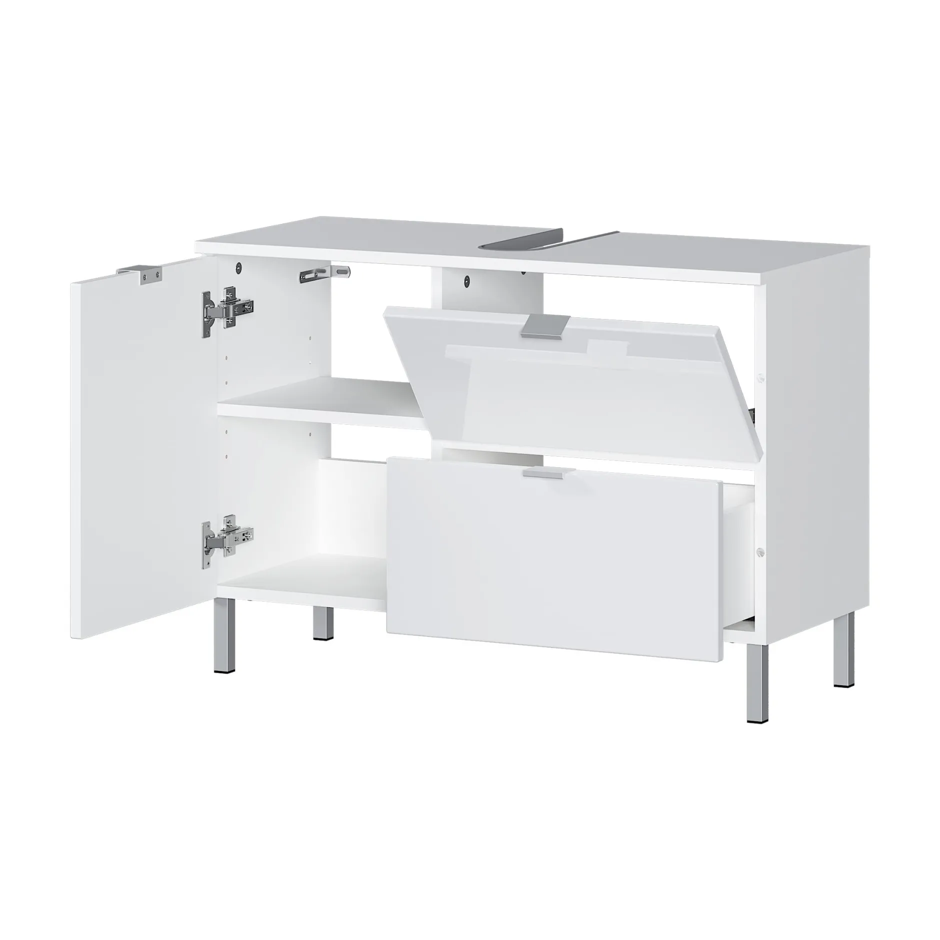Met deze stijlvolle wastafelkast geef je je badkamer snel een luxe uitstraling. De badkamerkast heeft een lade, een klep en een deur met daarachter een verstelbare legplank waardoor er voldoende ruimte is om al je spullen op te bergen. Allen voorzien van soft-close waardoor ze geruisloos sluiten. Het meubel is afgewerkt met een degelijke melamine waardoor deze goed schoon te maken is. Maak je badkamer compleet met de andere meubelen uit deze serie.